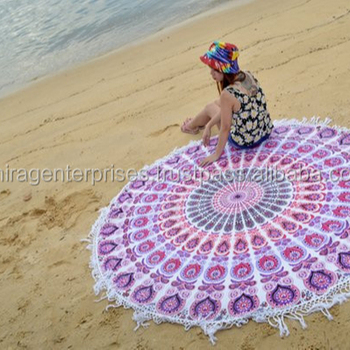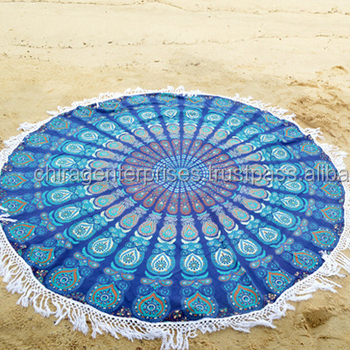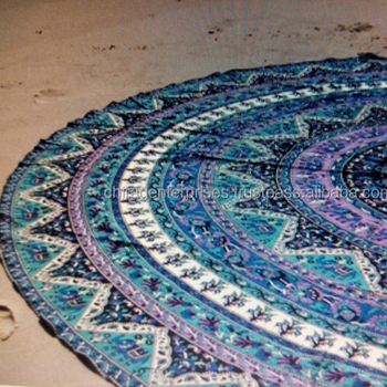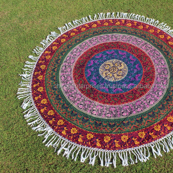Grande Tappeto Rotondo Indiano con Frange Mandala, Asciugamano da Spiaggia, Tappetino Stampato Hippie Mandala, Lotto all'Ingrosso OEM