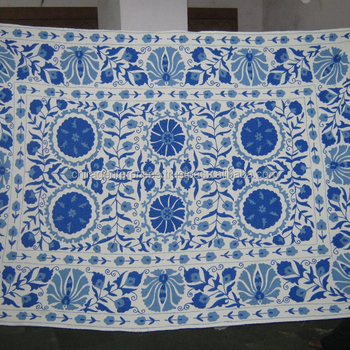 Coperta di lusso fatta a mano in cotone stile Suzani ricamato indaco per tutte le stagioni da viaggio per decorazioni per uso domestico letto e divano