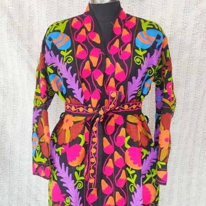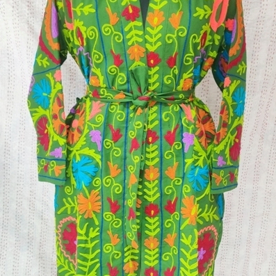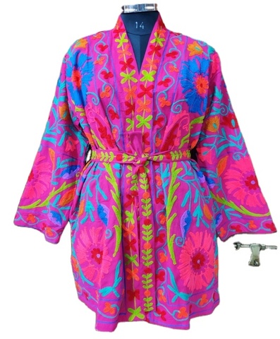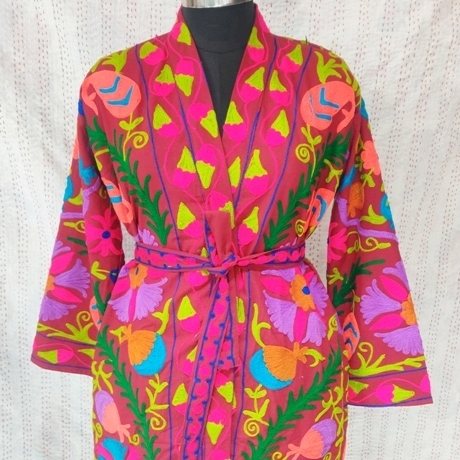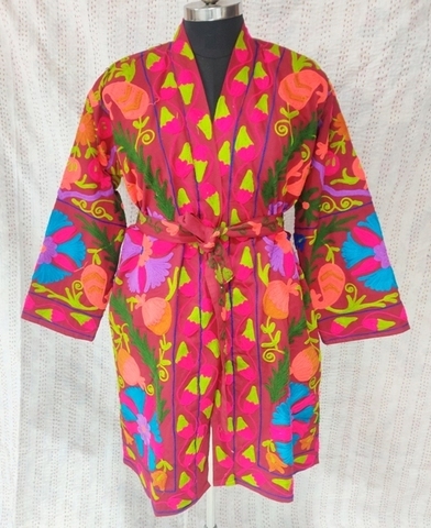 Thêu suzani Kimono suzani Robe cho phụ nữ thêu Robe cho phụ nữ thêu tay áo miễn phí Kích thước Ấn Độ Safari Áo khoác